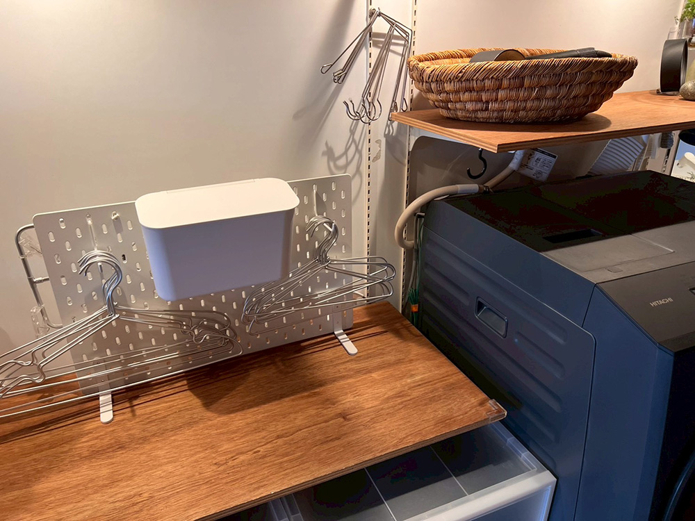 ランドリースペースに配置した「IKEA」の有孔ボードに!
