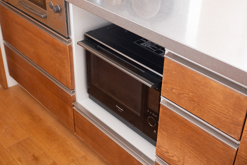 ハナコ:キッチン収納の真ん中に、オーブンレンジを設置したのですね。ここは一般的に食洗機が設置されているスペース?