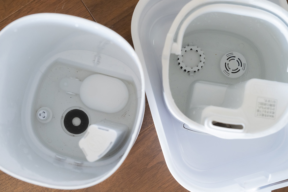 水タンクは給水の都度、軽くでも水洗いすることが大切です。これだけで、ヌメり(細菌の塊)を発生させにくくすることができます。毎日のこととなると面倒と感じるかもしれませんが、毎日の習慣にしてしまえば、手間も時間もほんの数十秒。この小さな積み重ねが、清潔な空気を保つ秘訣です。