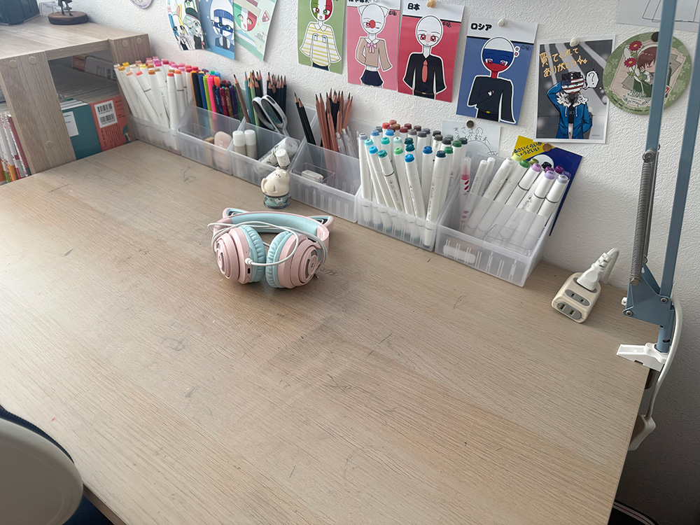 三木さんご自宅のこども部屋スペース。趣味と使いやすさが心地よく同居したデスク