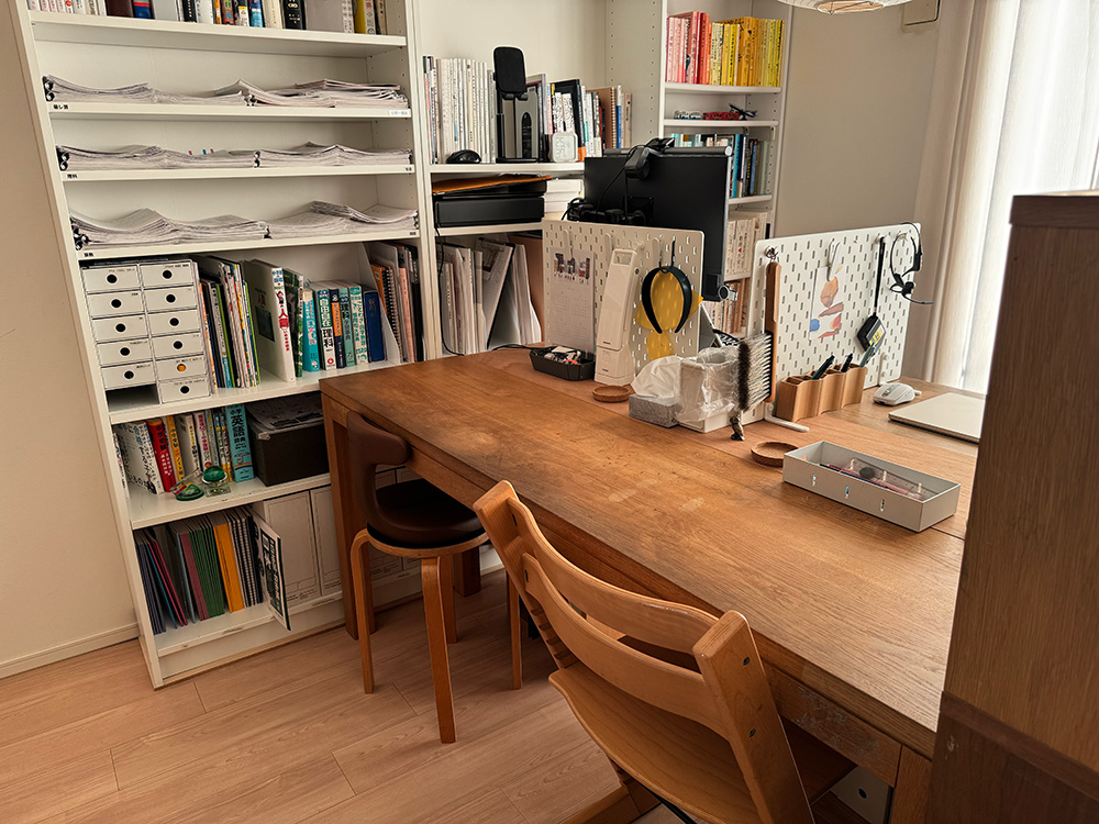 「長男は完全に横置き型、長女は縦置きと横置きのハイブリッド型。それぞれの個性に合わせて、一緒に片づけ方を模索してあげるのがいいのかな、と思いますね。学習しない時は机の上には何も置かずに、きれいにしておくのが、モチベーションアップにも繋がると思います」