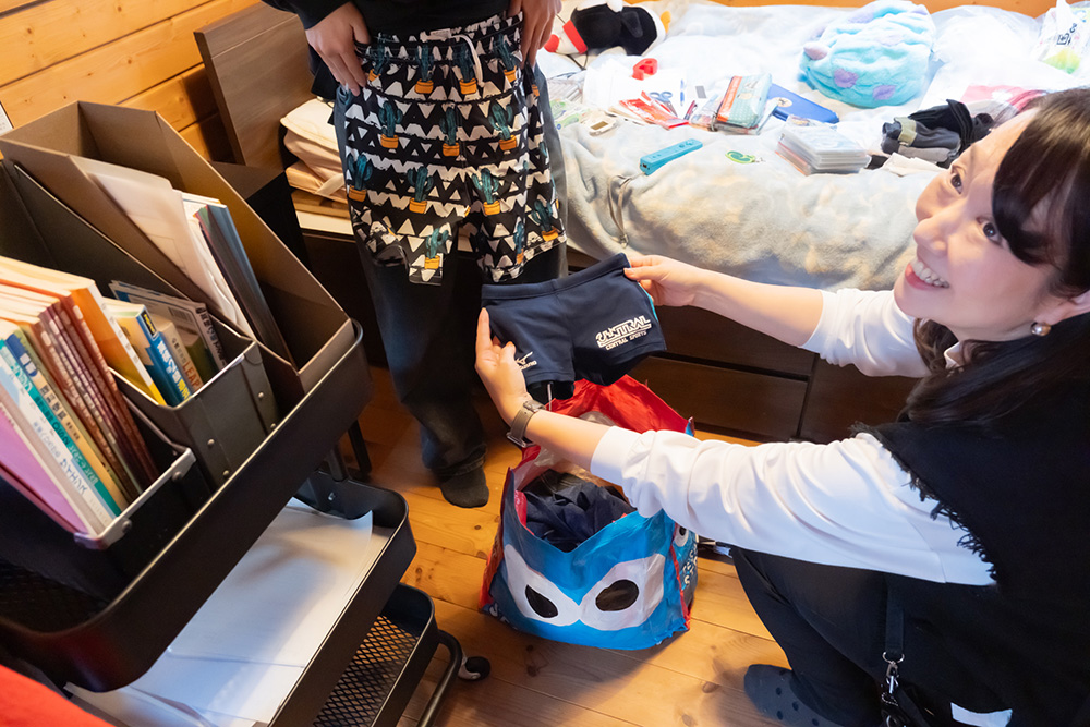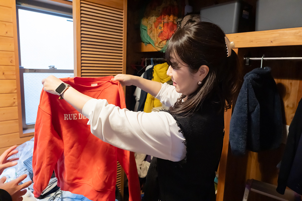 そろそろオシャレに目覚めるお年ごろ。「これは着る? 着ない?」と尋ねながら、どんどん仕分けていきます。
