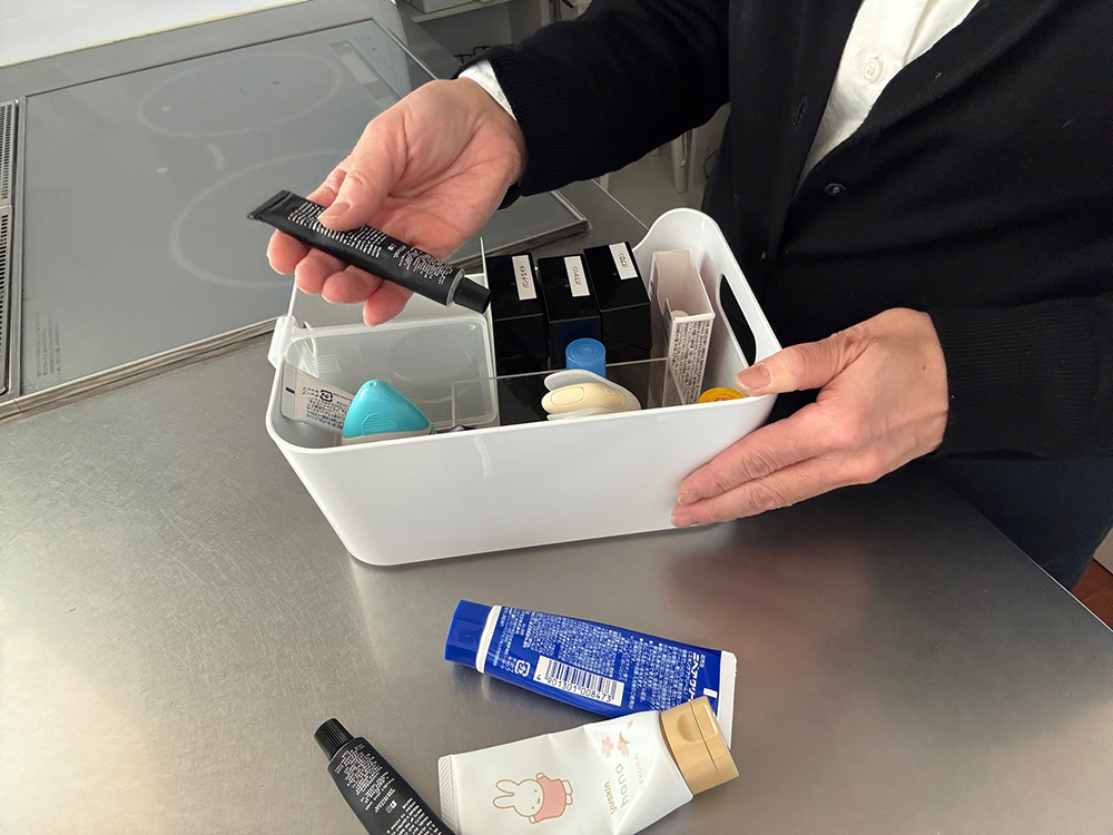 「細かく仕分けしてボックスにしまっても、出すのが面倒で結局使わない。使った後元に戻すのが大変。きちんと片付いているはずなのに、欲しいモノがすぐ見つからない。これらはよく聞くお悩みですよね。無理なく出せる、しまえるようになっていないから起こることではないでしょうか。片付いている、仕分けしてきっちり収納しているイコール使いやすい、ではないと私は思うんです。見た目がきれいで隠されていると気分がすっきりするかもしれませんが、自分が面倒に感じないようにしなければ続きません」