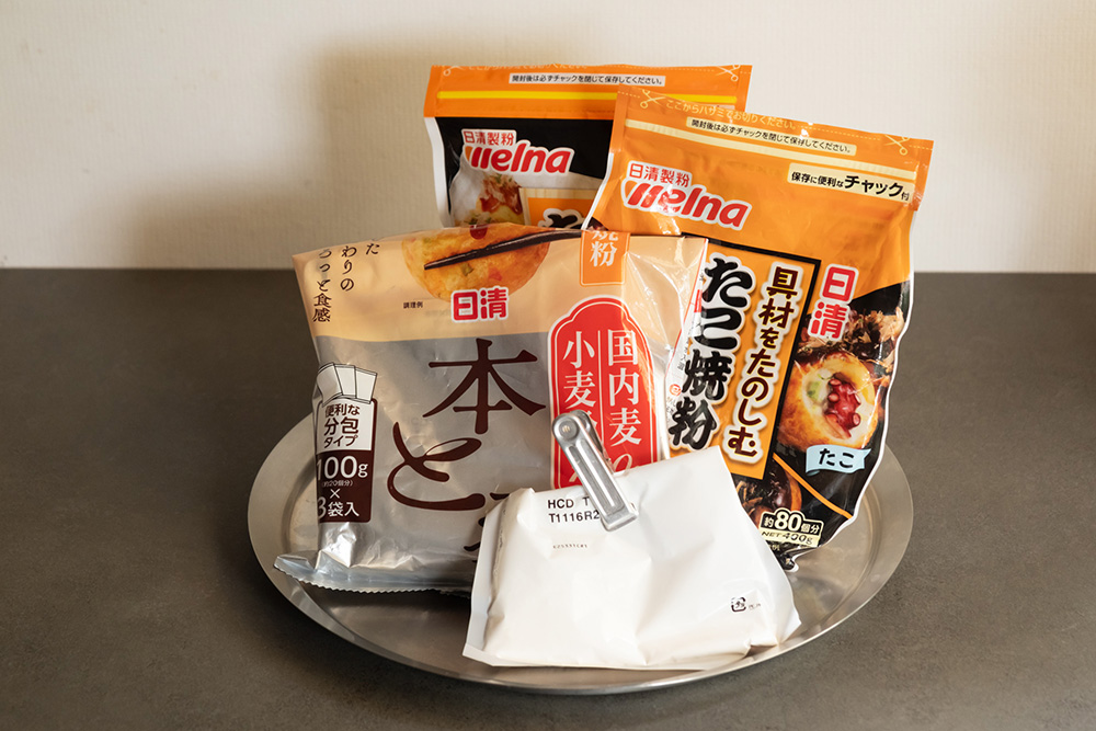 たこ焼きの粉にはかつお出汁、塩、ベーキングパウダーなどがブレンドされているため、味付け不要。ふくらみやすいので、材料を混ぜるだけで失敗なく作ることができます。