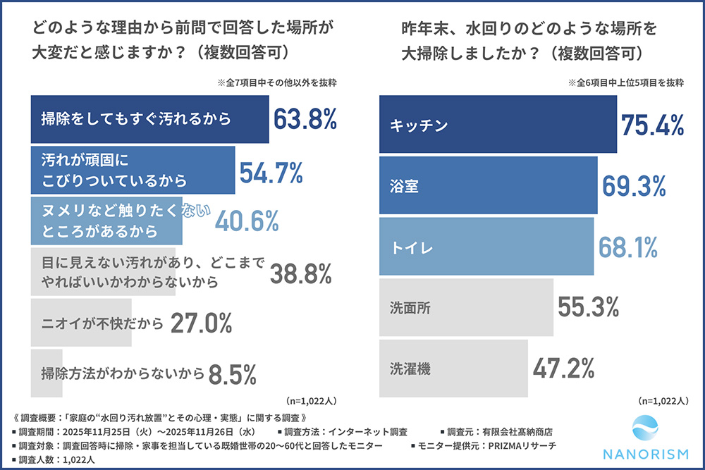 【出典】有限会社髙納商店「家庭の“水回り汚れ放置”とその心理・実態」に関する調査(2025年12月発表)