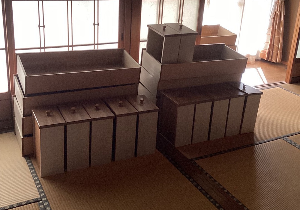 「整理収納の考え方では、片付けは引き出しひとつから始めましょうと話すところ。でも母は逆で、先に収納場所をなくしてしまったのです。私にはない発想で驚きました。サイドボードやたんすの引き出しをすべて出し、中身は段ボールに入れて別の部屋にとりあえず保管。時間のあるときに少しずつ整理していきました」
