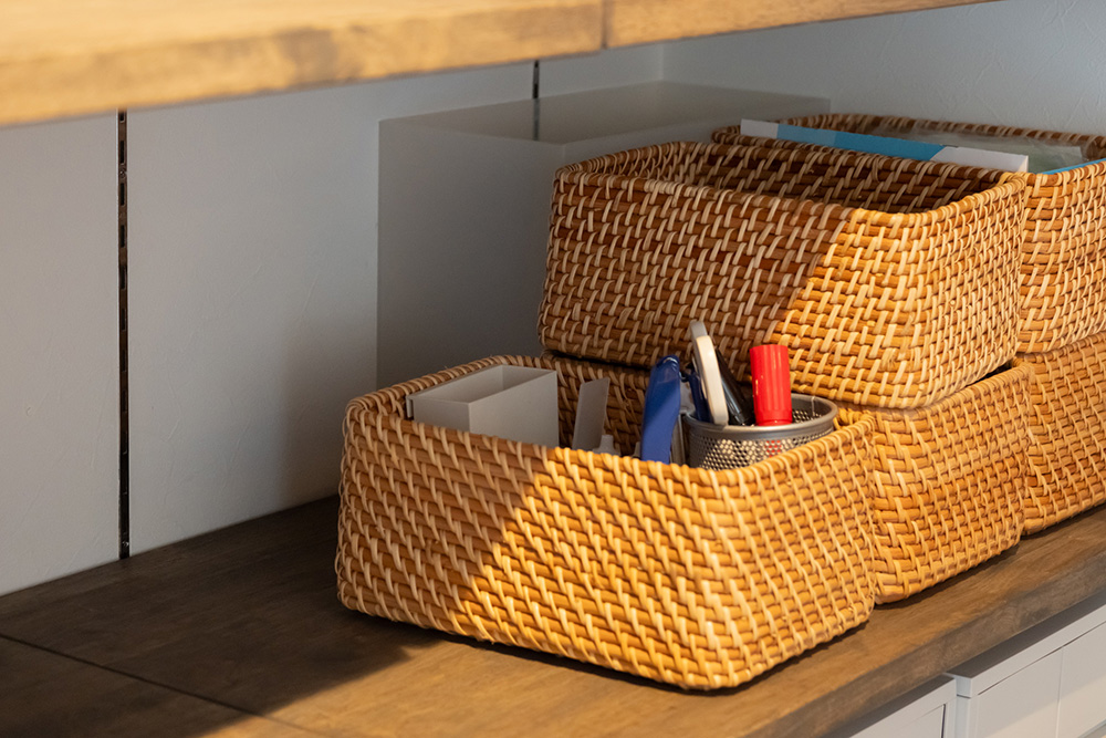 文房具のような家の中の細かい道具は、「使っているモノ」「使っていないモノ」が漫然と混ざっていないことが大切です。使っているモノだけがパッと取れる状態は、気持ちがいいほど行動がラクになり、片付けやすくなり、見た目もスッキリです。