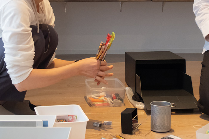 どんなものをどれだけ持っているか、古びて廃棄した方がいいものはないか、把握することが大切だからです。文房具のあった場所場所を一度まっさらにすれば、より適した配置もしやすくなります。